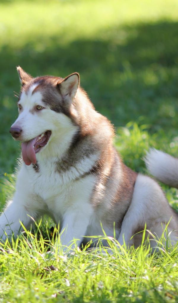 Wallpaper The Alaskan Malamute is sad lying on the grass