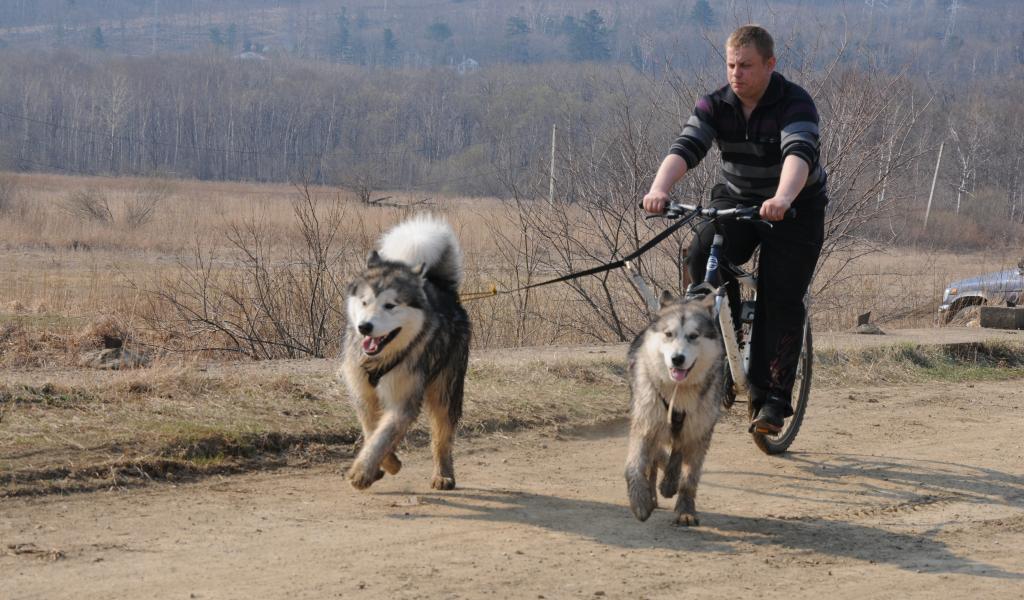 Wallpaper Alaskan Malamutes in the summer version of sleds