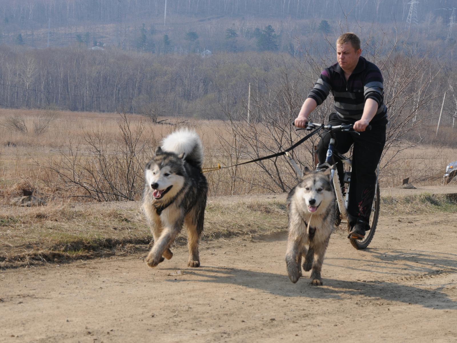 Wallpaper Alaskan Malamutes in the summer version of sleds