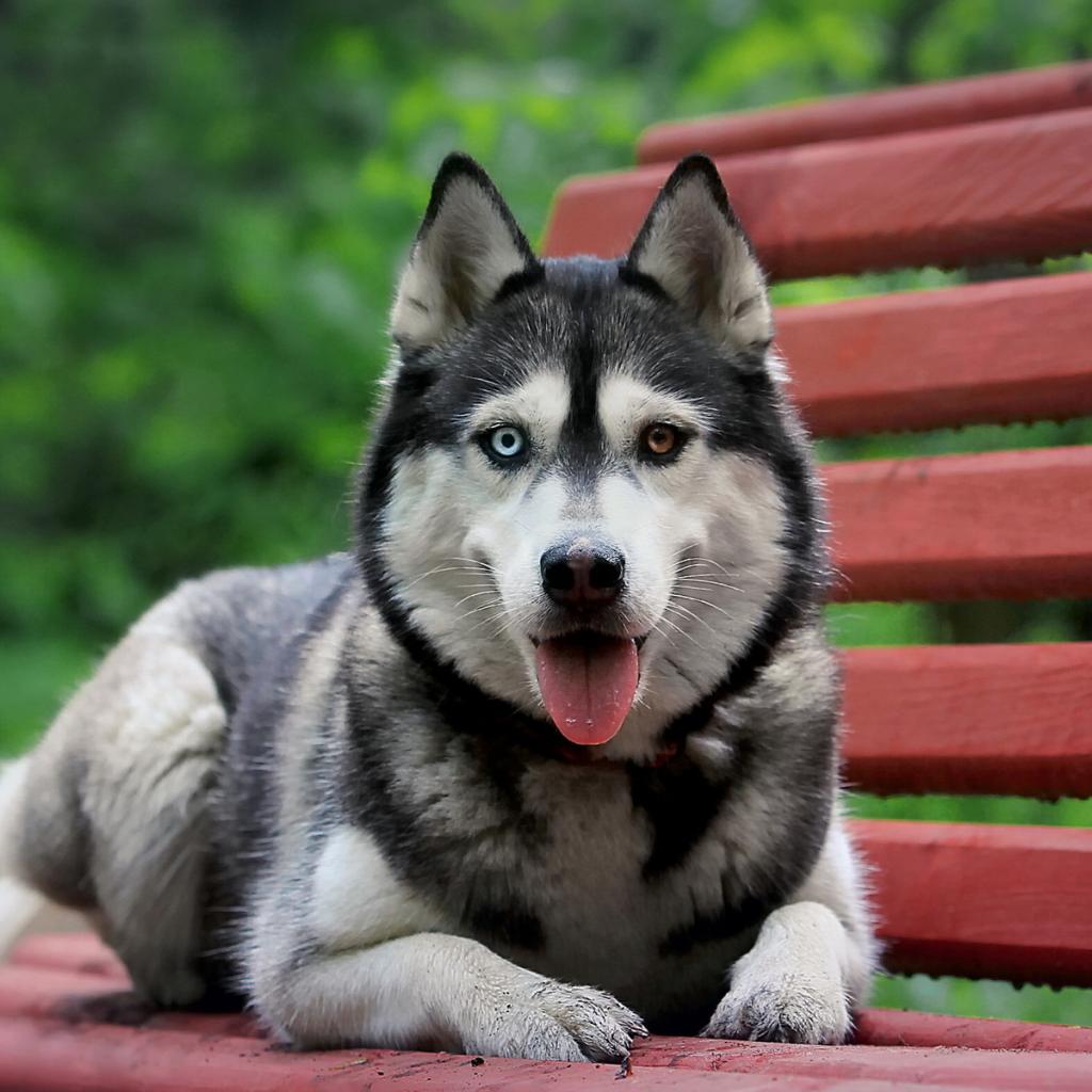 Wallpaper Siberian Husky on the bench