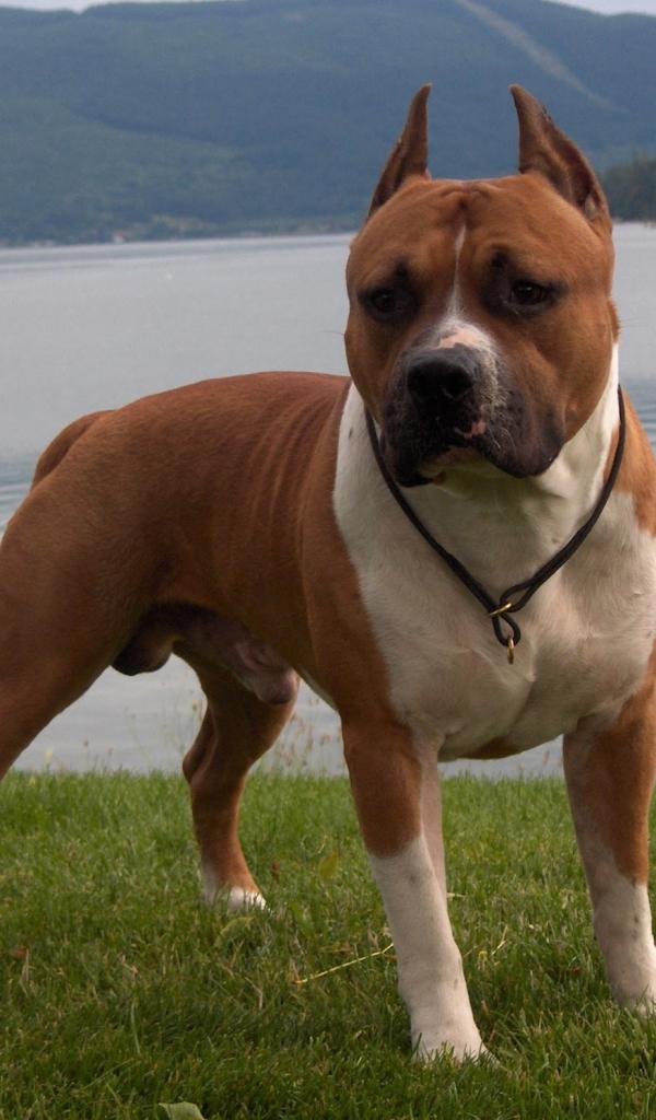 Wallpaper The Staffordshire Bull Terrier at the lake