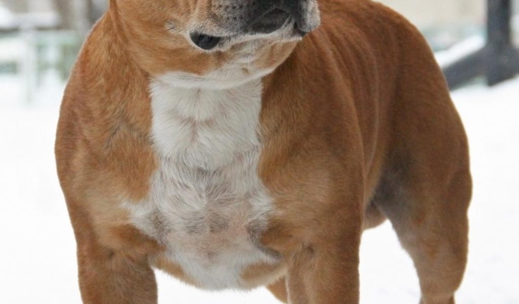 » Wallpaper The Staffordshire Bull Terrier on the snow