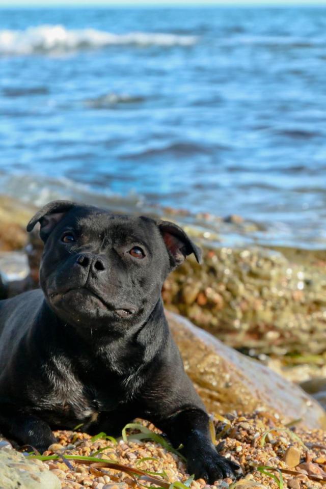 Wallpaper The Staffordshire Bull Terrier at the beach