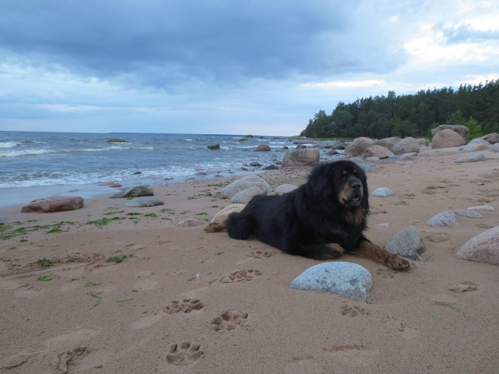 » Wallpaper Tibetan mastiff on the beach