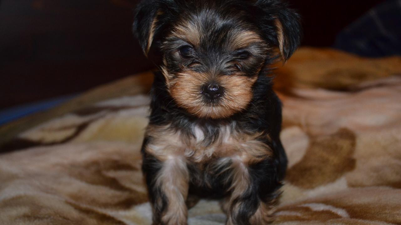 Wallpaper Norfolk terrier puppy chewing on a toy