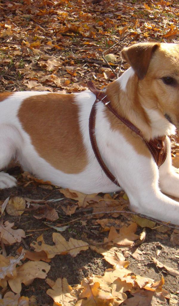 » Wallpaper Fox terrier is on the leaves