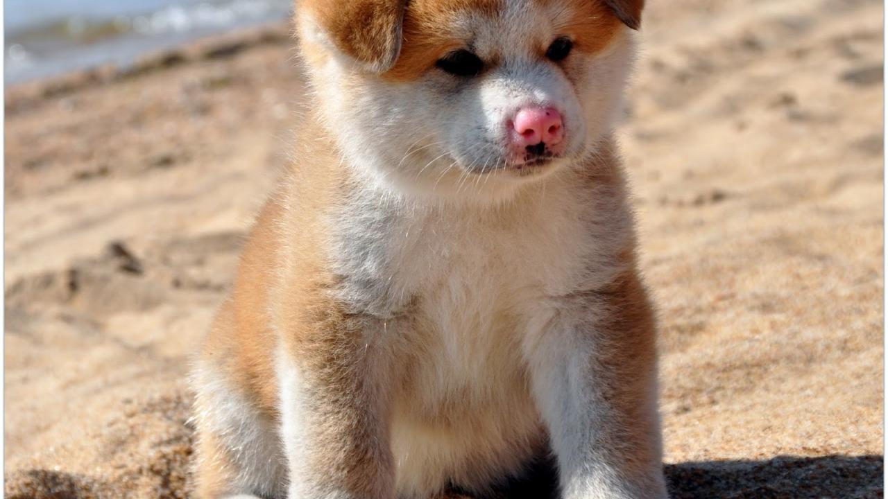 Wallpaper Beautiful Akita Inu puppy in a basket
