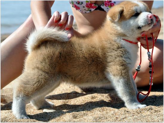 Wallpaper Beautiful Akita Inu puppy in a basket