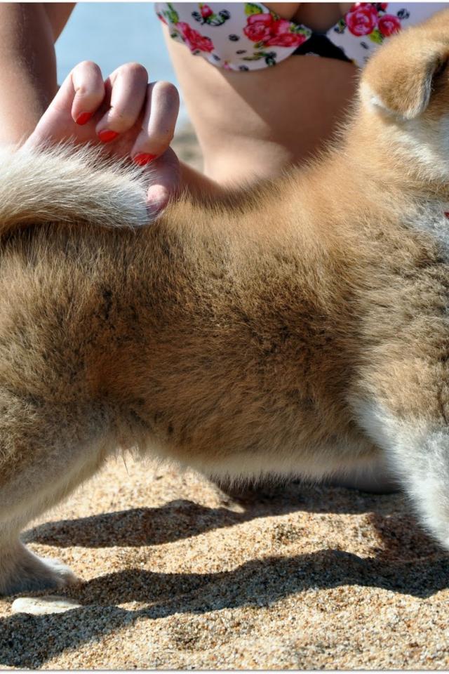 Wallpaper Beautiful Akita Inu puppy in a basket
