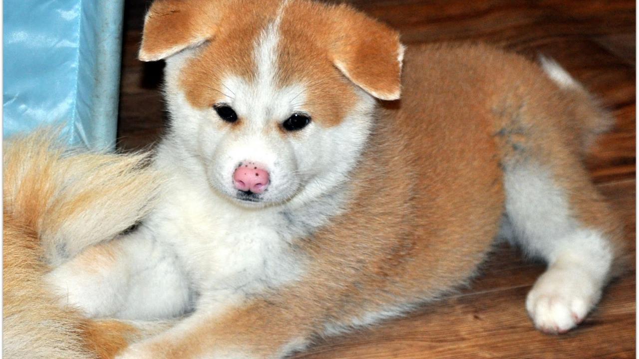 Wallpaper Beautiful Akita Inu puppy in a basket