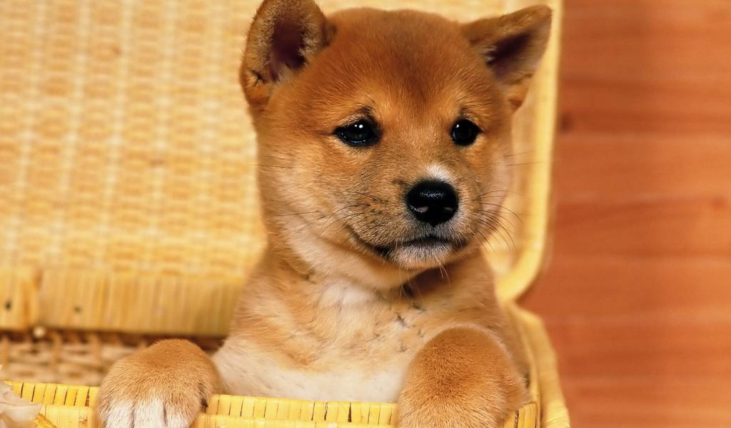 Wallpaper Beautiful Akita Inu puppy in a basket