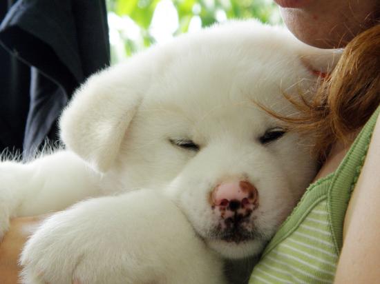 Wallpaper Akita Inu puppy in the hands of the owner