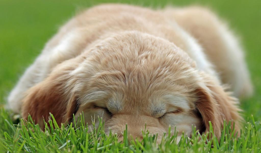 Wallpaper Golden terrier is sleeping on the gras