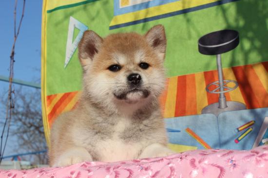 » Wallpaper Akita Inu puppy on a blanket