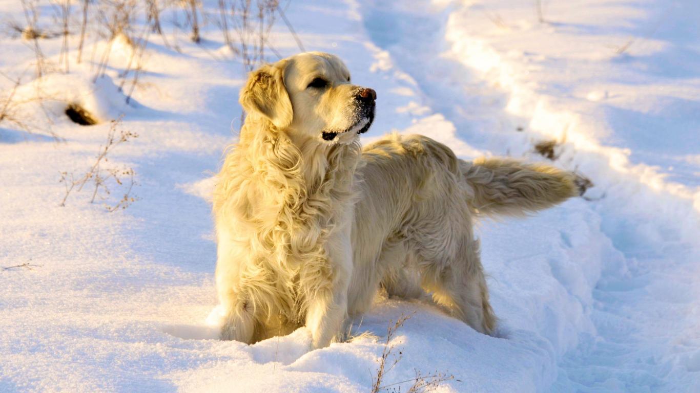 Wallpaper Golden terrier in the snow