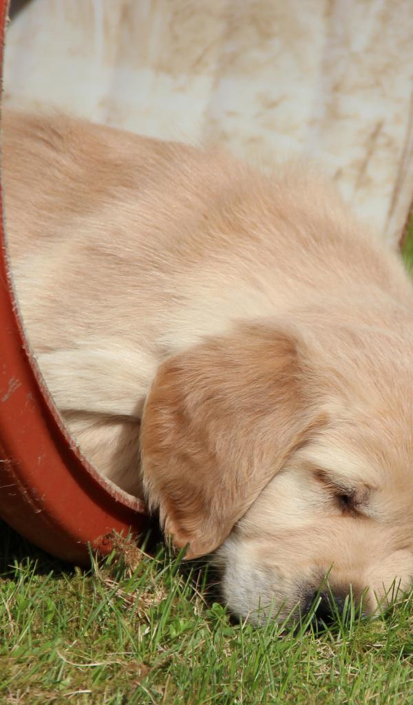 » Wallpaper Golden terrier in the barrel