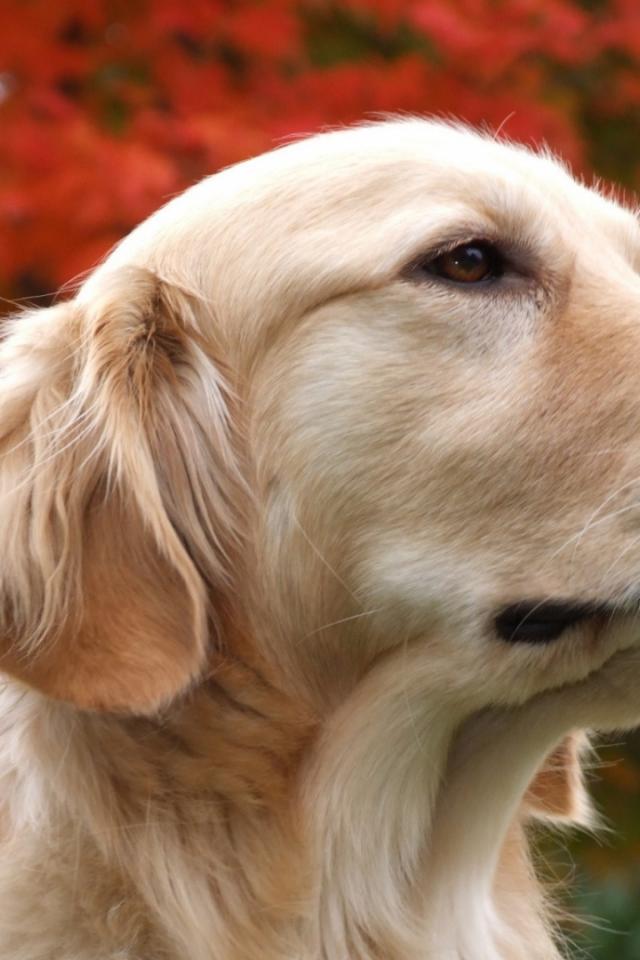 Wallpaper Golden terrier and and autumn tree