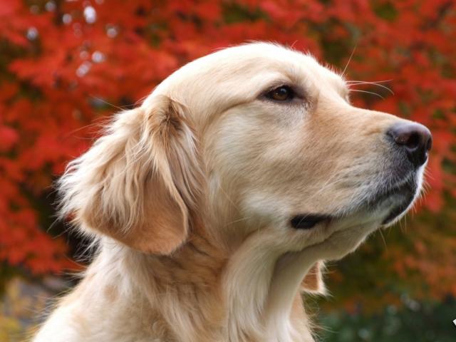 Wallpaper Golden terrier and and autumn tree