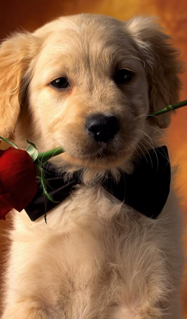 Wallpaper Golden terrier with a rose