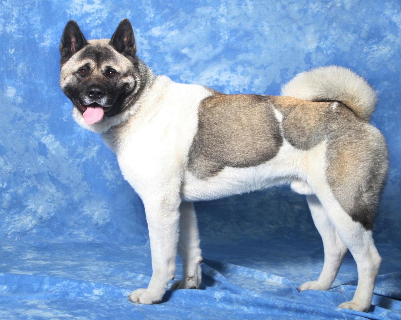 Wallpaper Akita Inu on a blue background