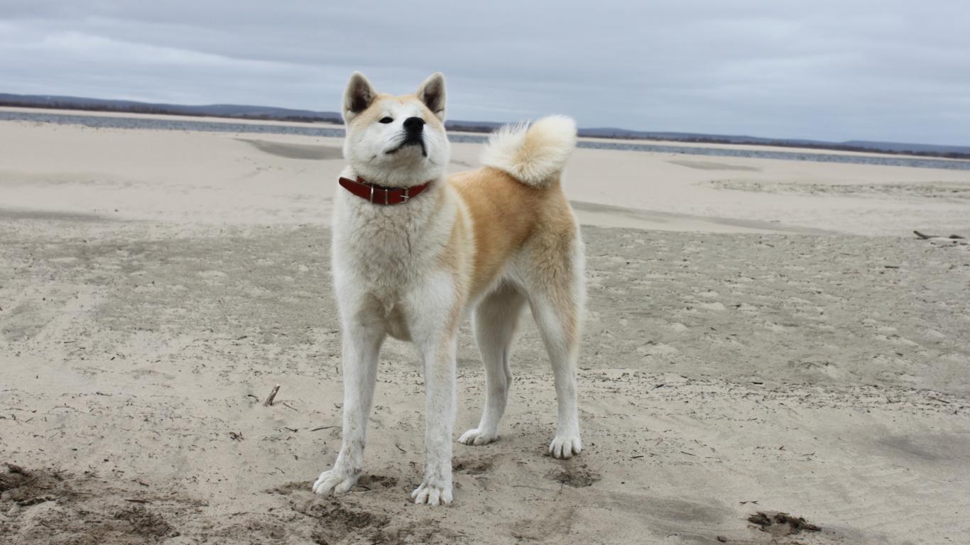 » Wallpaper Akita Inu on the sandy beach