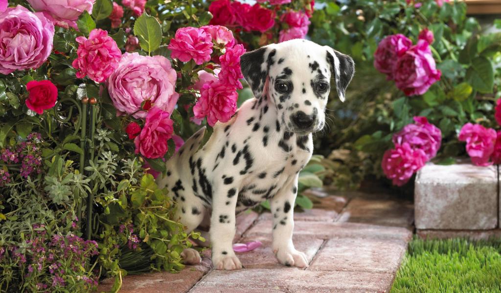 Wallpaper Dalmatian hiding in the flowers