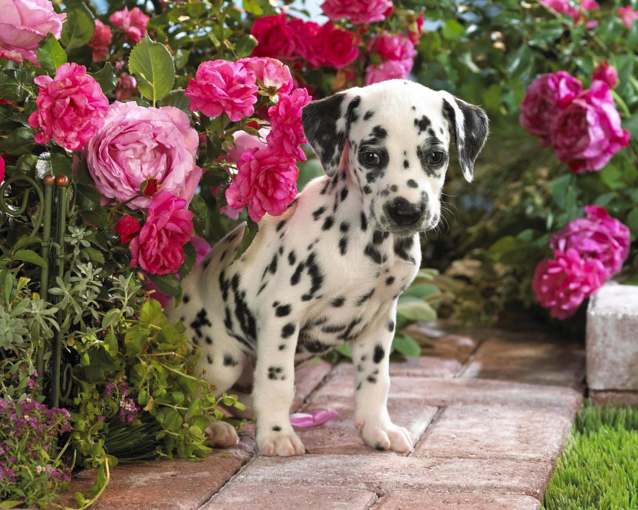 Wallpaper Dalmatian hiding in the flowers