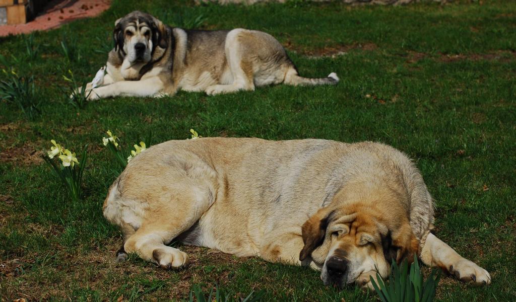Wallpaper The Spanish mastiff is sleeping on the grass