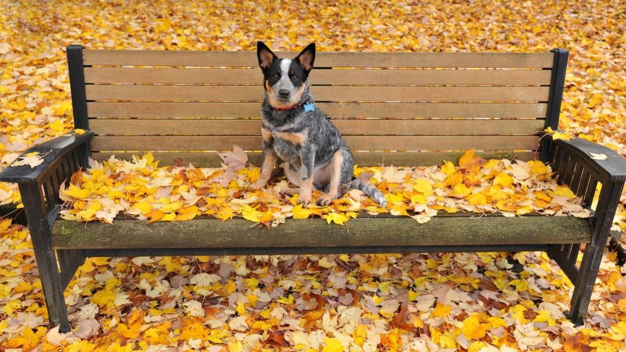 Wallpaper Australian shepherd puppy is sitting on a bench