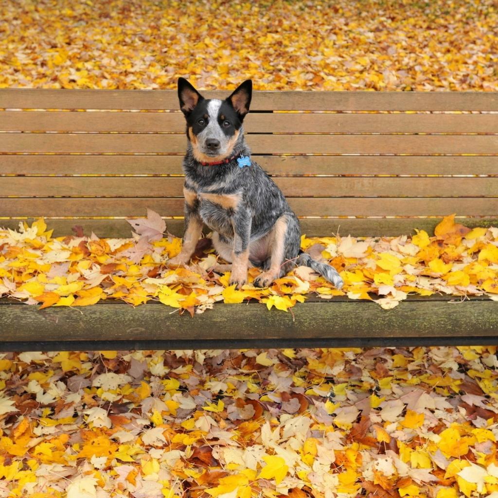 Wallpaper Australian shepherd puppy is sitting on a bench