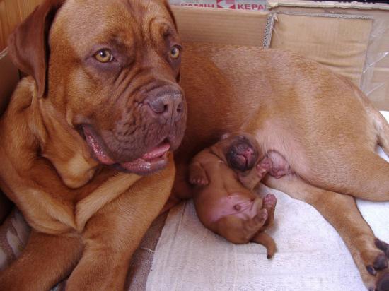 Wallpaper Dogue de Bordeaux in the bed with puppies