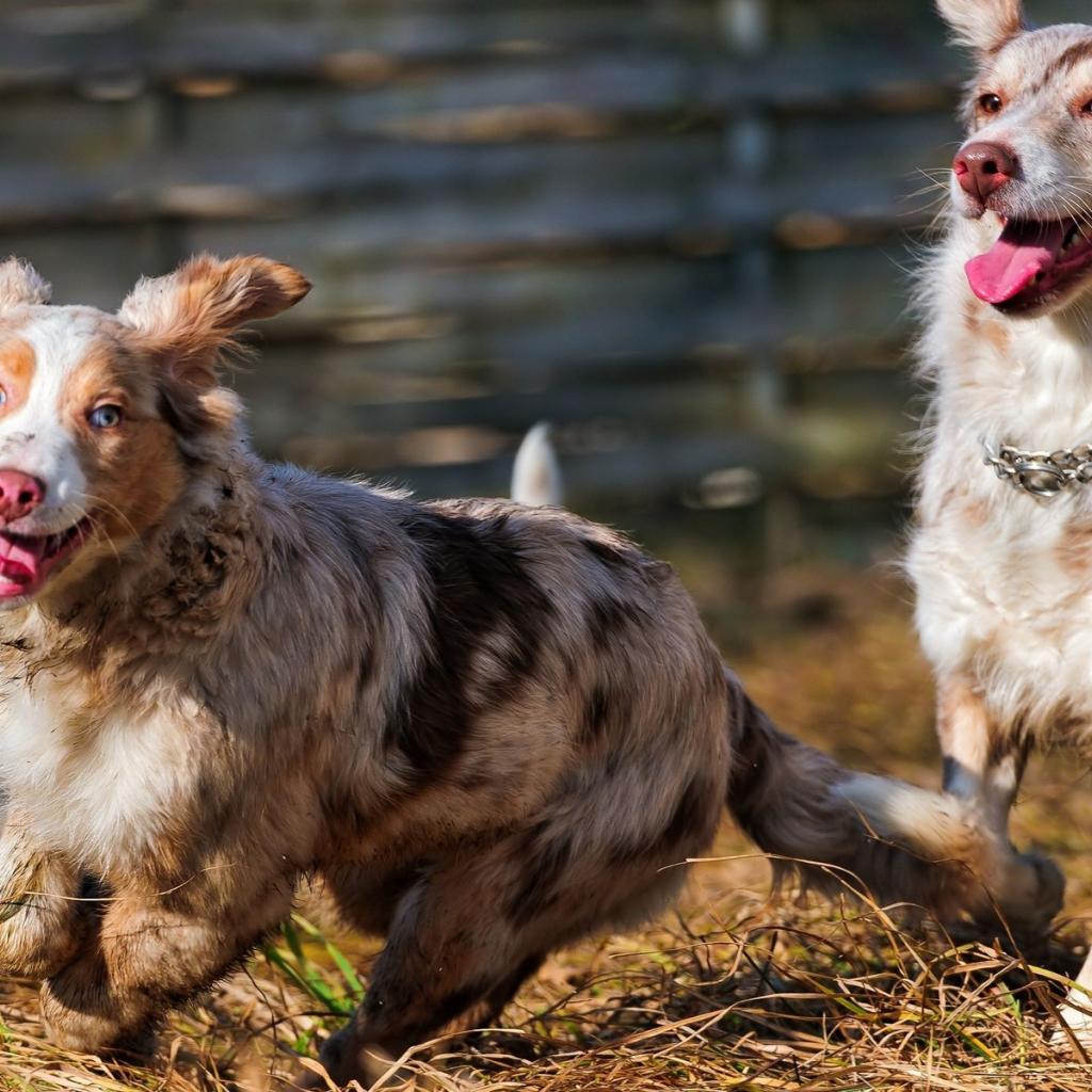 Wallpaper Australian Shepherds play