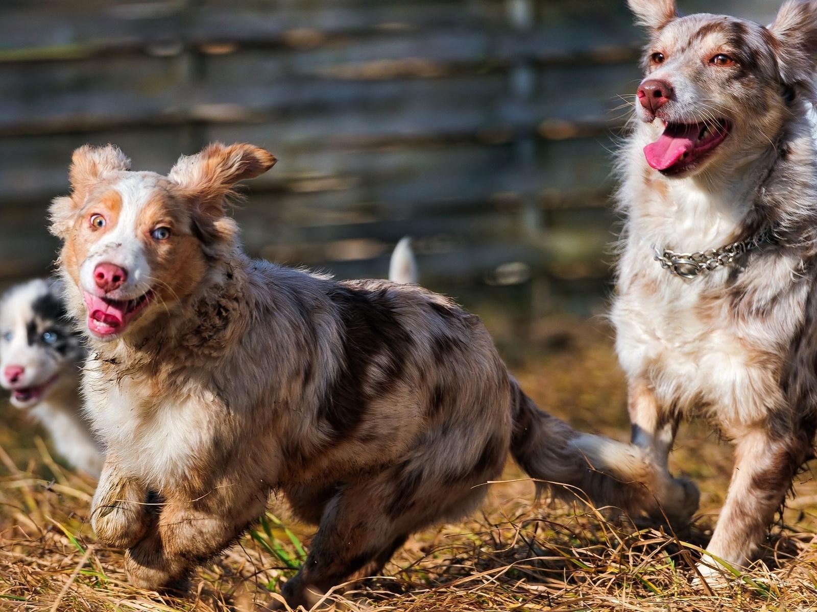 Wallpaper Australian Shepherds play