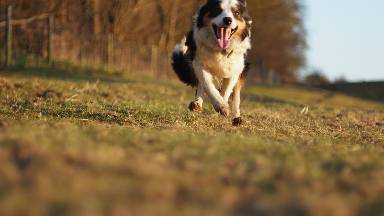 Wallpaper Happy Australian Shepherd runs to the host