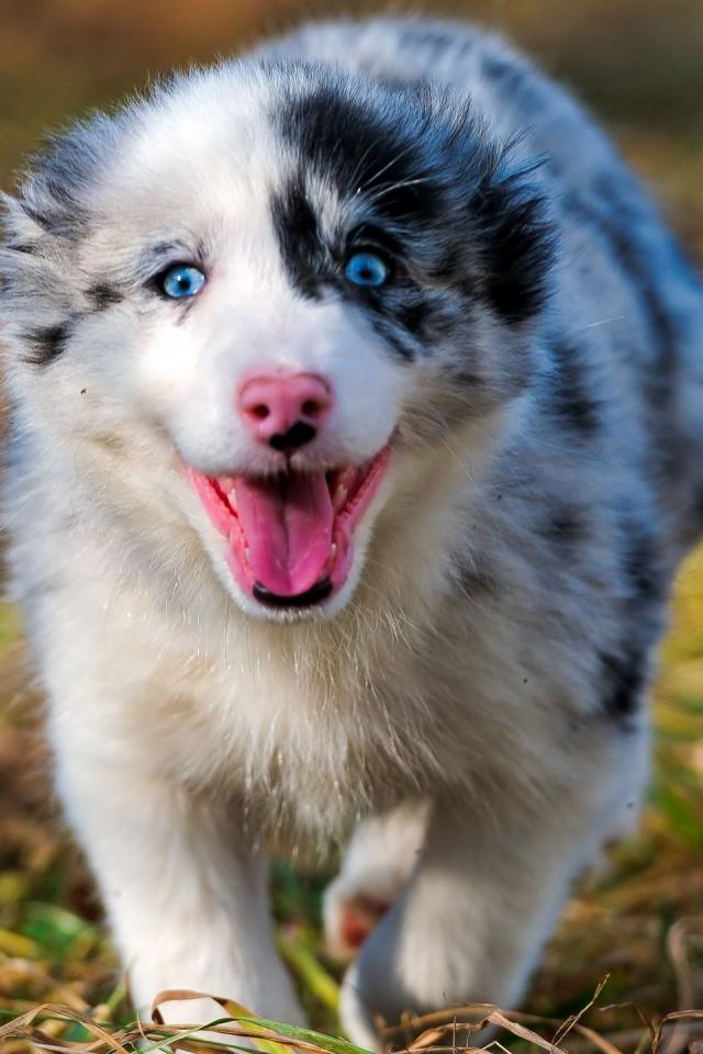 » Wallpaper Happy Australian Shepherd runs