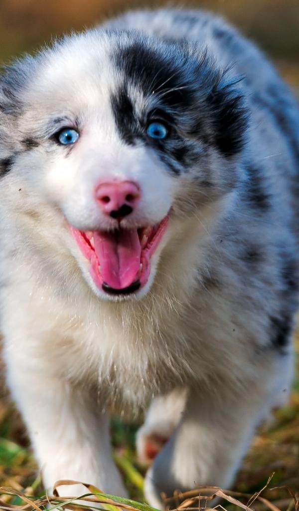 Wallpaper Happy Australian Shepherd runs