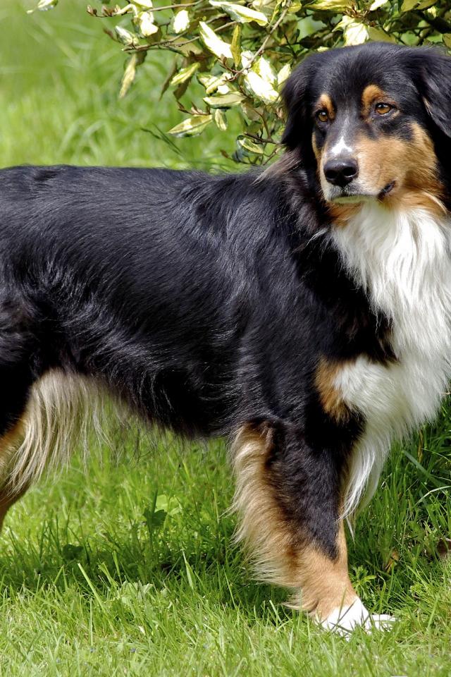 Wallpaper Australian Shepherd near the the bush