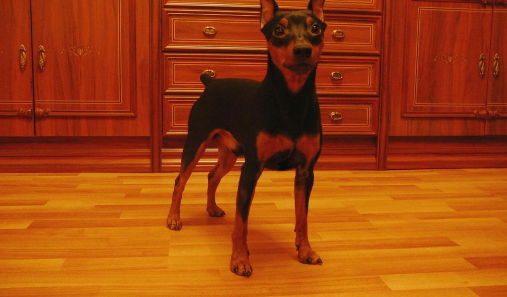 » Wallpaper Miniature Pinscher on the kitchen