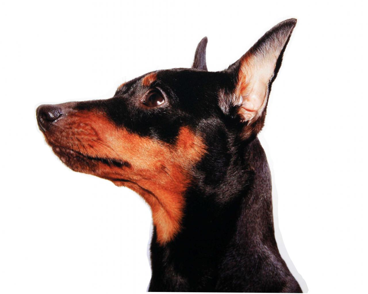 Wallpaper Sleepy Miniature Pinscher in the bed