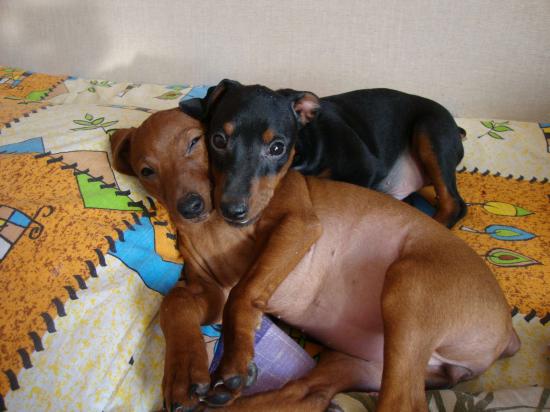 Wallpaper Miniature Pinschers lying on each other