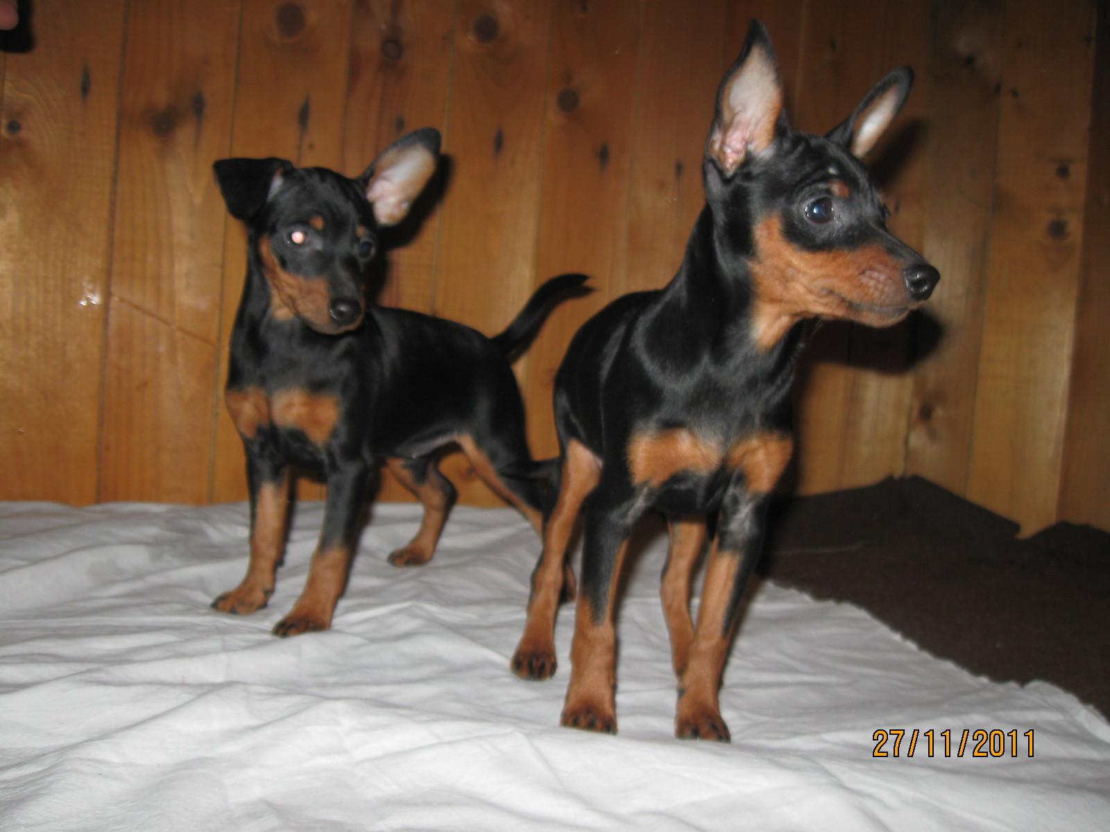 Wallpaper Little Miniature Pinschers posing for camera