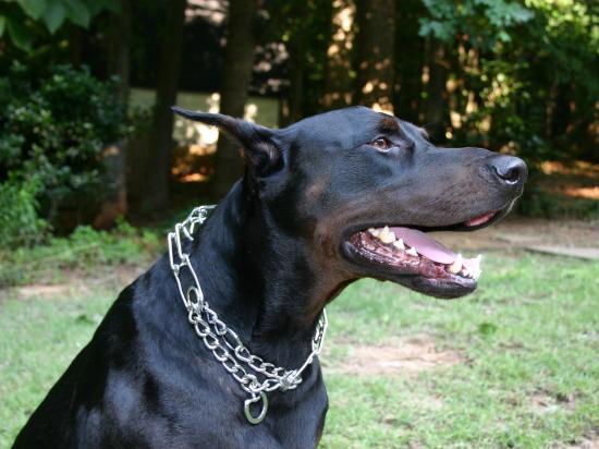 » Wallpaper Black doberman with metal chain