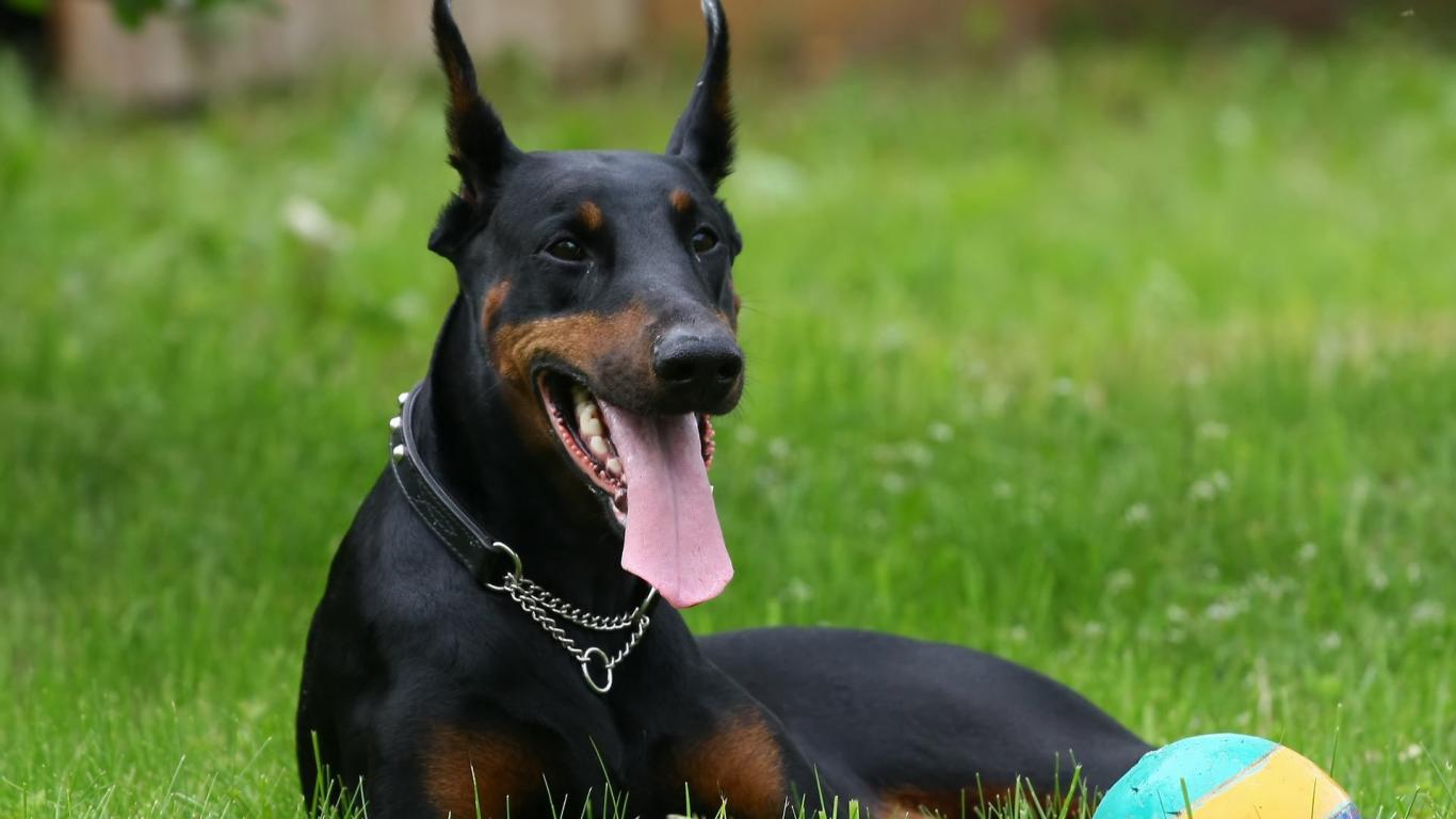 Wallpaper Black doberman and the ball