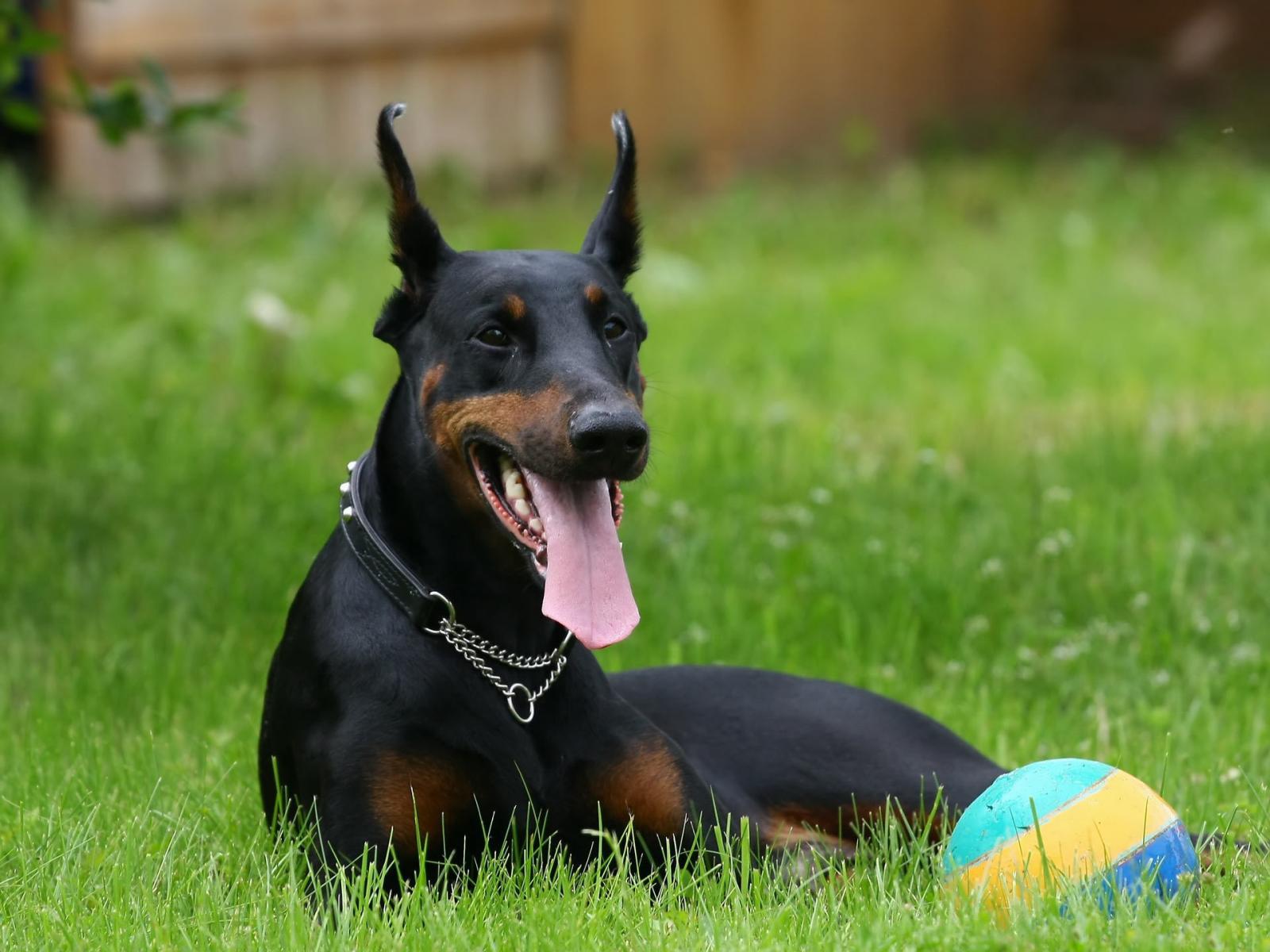 Wallpaper Black doberman and the ball