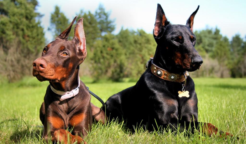 Wallpaper little doberman and his mother