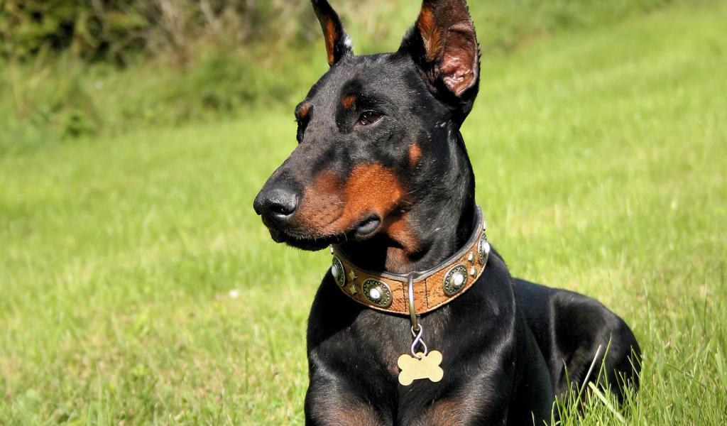 Wallpaper Black doberman with metal chain