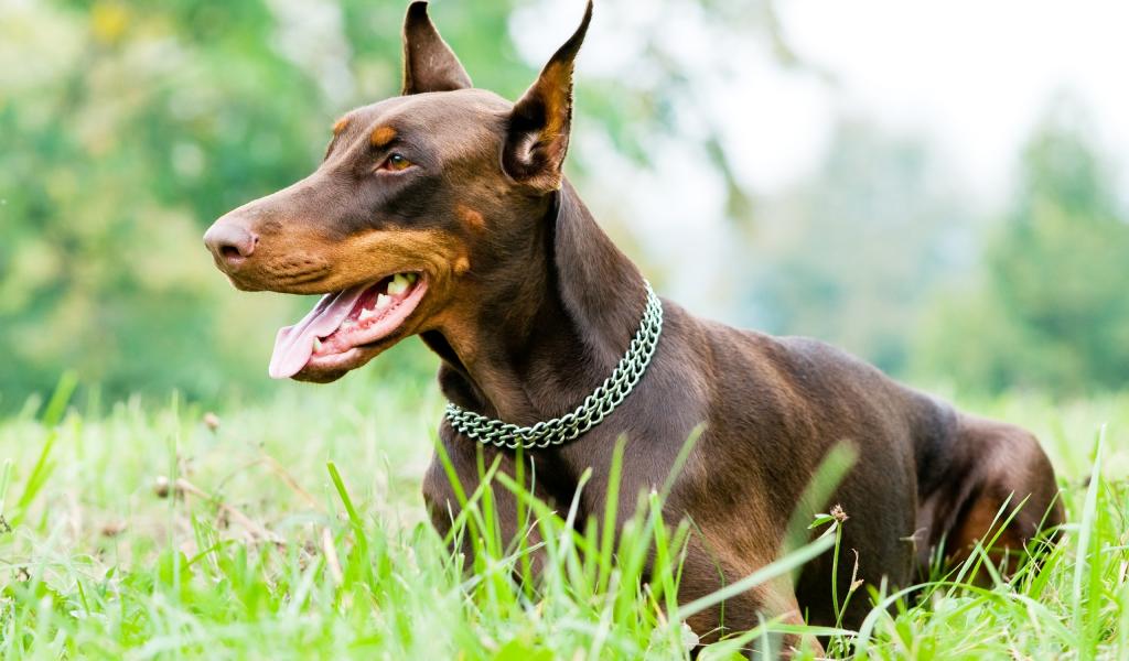 Wallpaper Brown doberman on the grass
