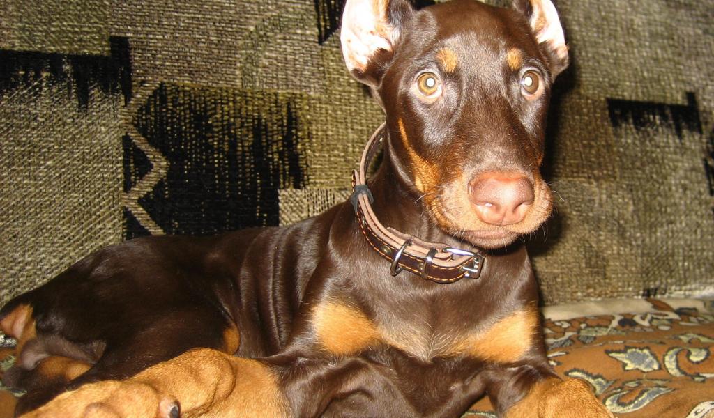 » Wallpaper Doberman lying on the sofa