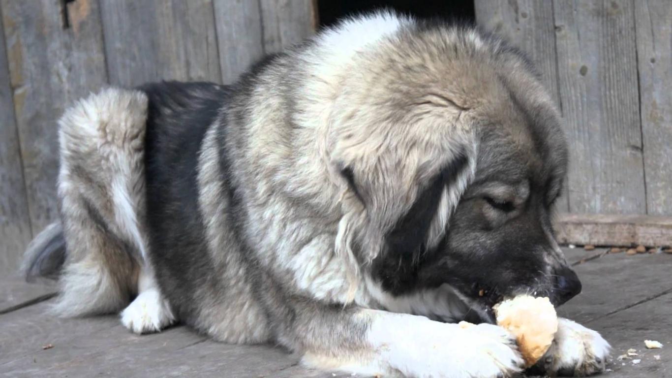 Wallpaper Big Caucasian Shepherd eating bread