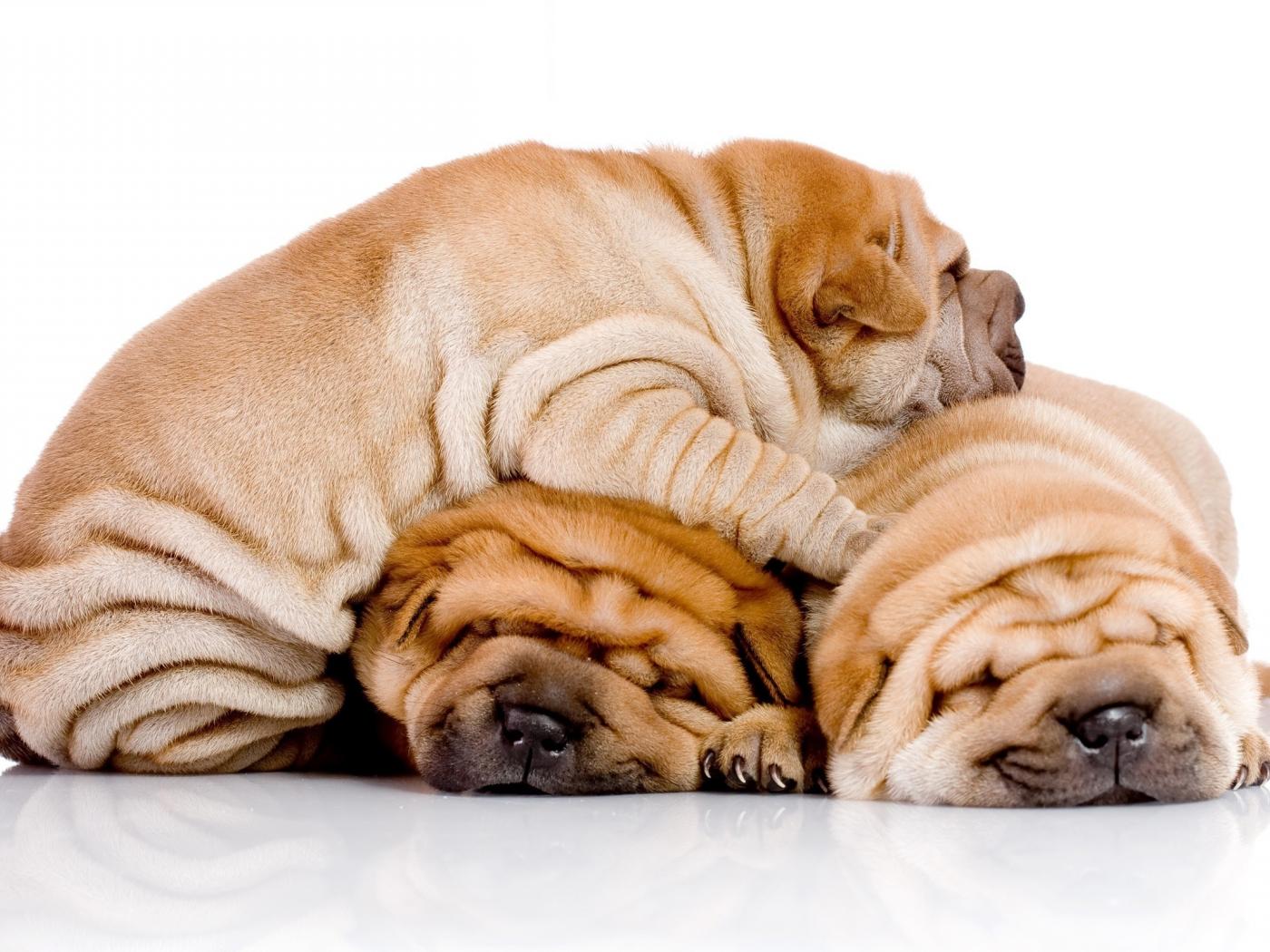 Wallpaper Three puppies shar pei are sleeping on each other